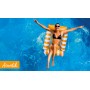 Materassino in PVC e rete.Ogni pezzo è contenuto in un sacchetto individuale a chiusura automatica.Disponibile nei colori arancione e blu con strisce bianche.