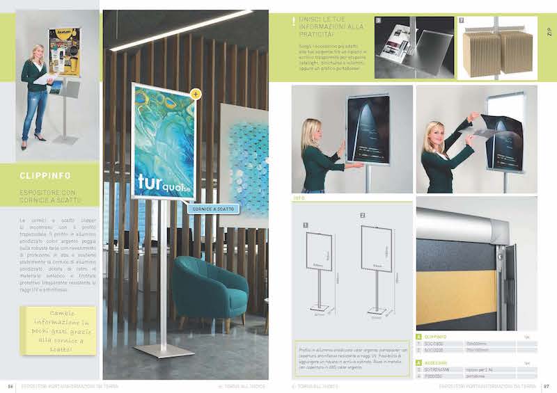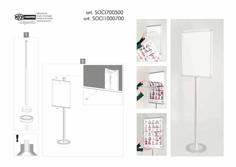 Le cornici a scatto clipper si incontrano con il nostro profilo multifunzionale soistes. il profilo in alluminio anodizzato color argento poggia sulla robusta base con rivestimento di protezione in abs e sostiene stabilmente la cornice di alluminio anodizzato color argento, dotata di retro in materiale sintetico e frontale protettivo trasparente resistente ai raggi UV e antiriflesso.