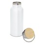 Thermos in acciaio inossidabile a doppio strato, in bianco, argento e un elegante nero opaco combinato con un coperchio in bambù. È caratterizzato da un'originale impugnatura che ricorda le vecchie lattaie.Capacità 500 ml.