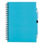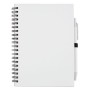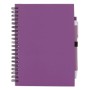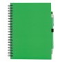 Quaderno ECO "ZAS" ad anelli, copertina in cartoncino e foderate in colori vivaci.Ha un elastico laterale per tenere ferma la penna (inclusa). Penna con corpo in cartone e colore in tinta con il taccuino.70 pagine bianche all'interno.