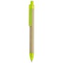 Penna a sfera in cartone riciclato con un design moderno e terminali di diversi colori traslucidi.Scrittura blú.