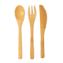 DescrizioneSet 3 pz di posate in bambù in sacchetto di cotone.