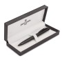 Penna metallica con fusto in alluminio spazzolato e apertura a girello. Scrittura blu, morbida al tatto.