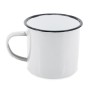 Gusti il suo caffé in una tazza che ricorda quella che usavano i nostri nonni, in metallo , con finiture irregolari. Puó sceglie fra il modello in bianco per stampa sublimatica o quelli a colori, per la stampa in serigrafia.