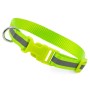 Collare con striscia riflettente per animali domestici, fabbricato in poliestere resistente, regolabile con chiusura click, include anello metallico